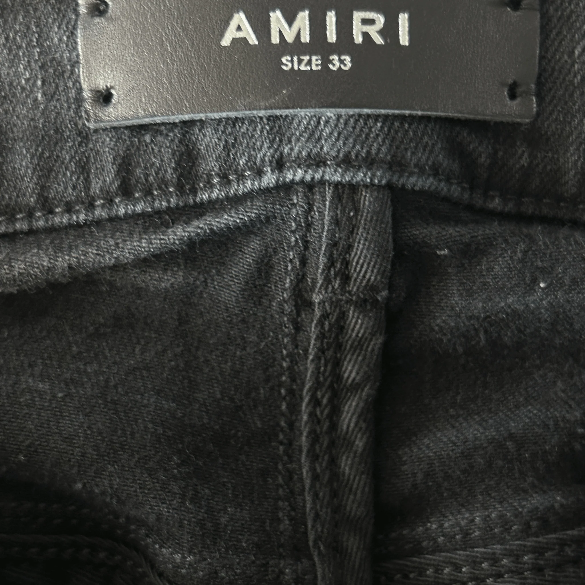 -70%Amiri Faded Black Baroque Varsity Logo Jeans—